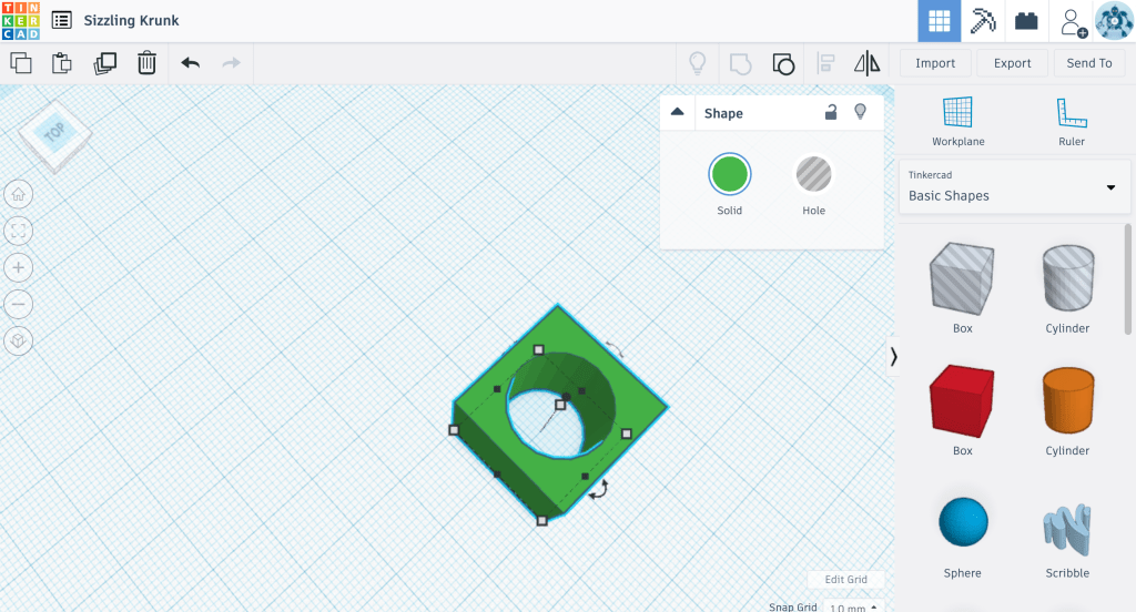Creating a 3D object on a 2D screen can be tricky. Just like when you are building something in the real world, looking at the object from different angles is vital to putting it together. Before we start assembling anything, let’s play around with the view controls a bit and get comfortable with them. No, we won’t work through all of the amazing things you can do in Tinkercad (we just don’t have time in this workshop)