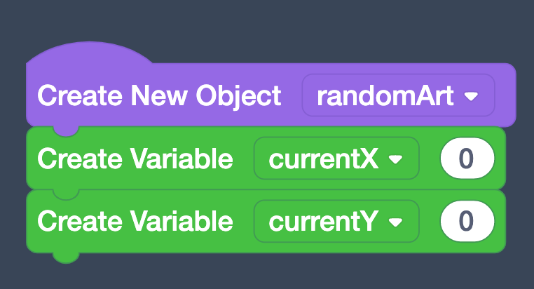 - Choose a random x and y distance to move the shape from the last shape, and add these distances to the variables you created above to determine the new shape’s location.