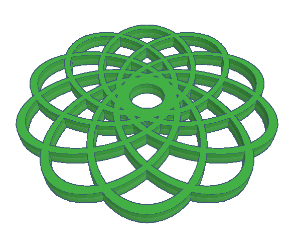 Run the code and see what it makes. At first glance the block you used doesn’t seem like it would make what it made, right? A “tube” made a square? This is a trick in Codeblocks that isn’t obvious right away… Remember when we set the number of sides as high as we could earlier when making the cylinder? Tinkercad (and thus codeblocks) makes all of its round objects as polygons with lots of sides – the more sizes the smoother it seems. Actually, all computers do this with circles, Tinkercad just makes it more obvious and controllable. So to make a square (or pentagon, or hexagon…) without the middle filled in (like a cube would be) just make a tube and set the number of sides to 4 (or 5, or 6…). The same thing will happen when you make a torus, except the sides will be rounded instead of straight-edged.